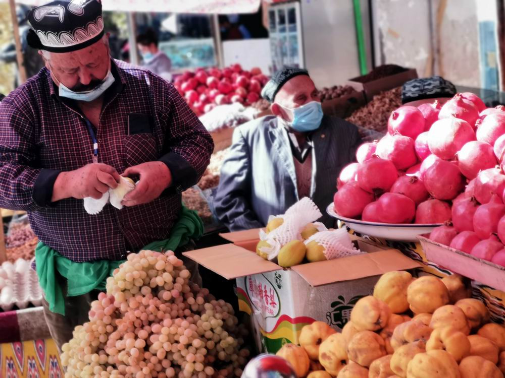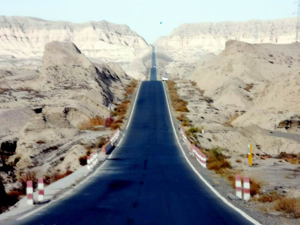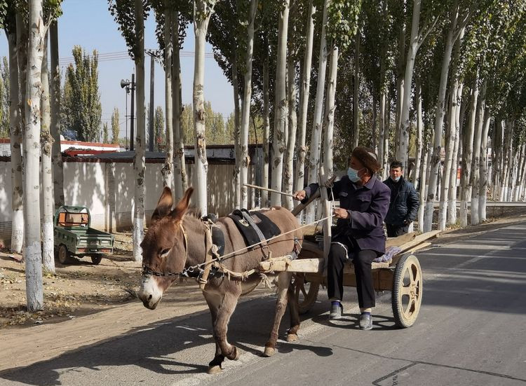 转到省道307后,路况比独库公路还要好,地质平坦,道路两旁是一排排参天的扬树,扬树后面就是农田与维吾族民居,一派繁荣的气息。因为靠近天山南坡,有山水滋润,这里富足而安宁。