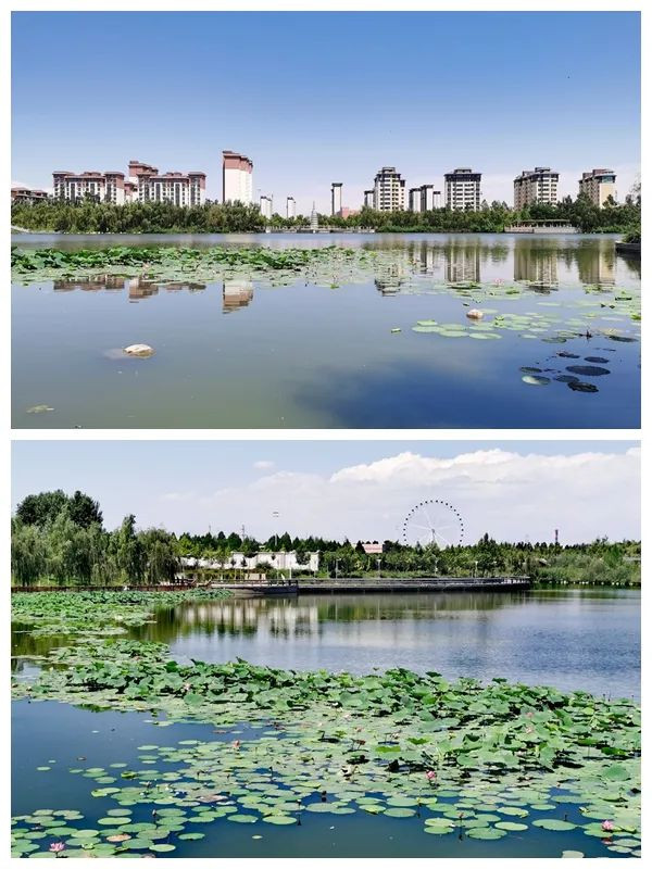 姑墨亭背后是一座公园,沿多浪河而建,园中荷叶田田,绿树成荫,景色秀美。