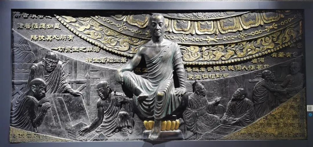 我国四大译经家之一的鸠摩罗什就诞生于这一时期的龟兹,我们今天所熟悉的佛教名句,比如“一切有为法,皆如梦幻泡影,如露亦如电,应作如是观”、“色即是空,空即是色”等都是他最先翻译的。前文中介绍锡提亚迷城的西域古国微缩景观时,龟兹古国前的和尚雕塑就是鸠摩罗什。下文转到克孜尔石窟,我们还会看到他的身影。
