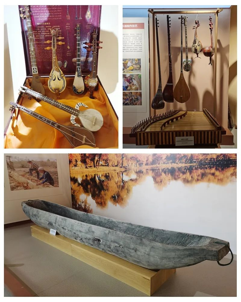 (胡杨木独木舟和刀郎热瓦甫等乐器)