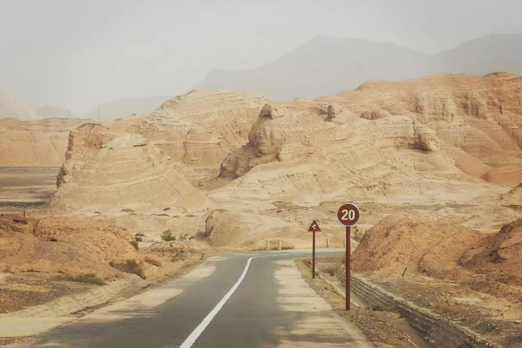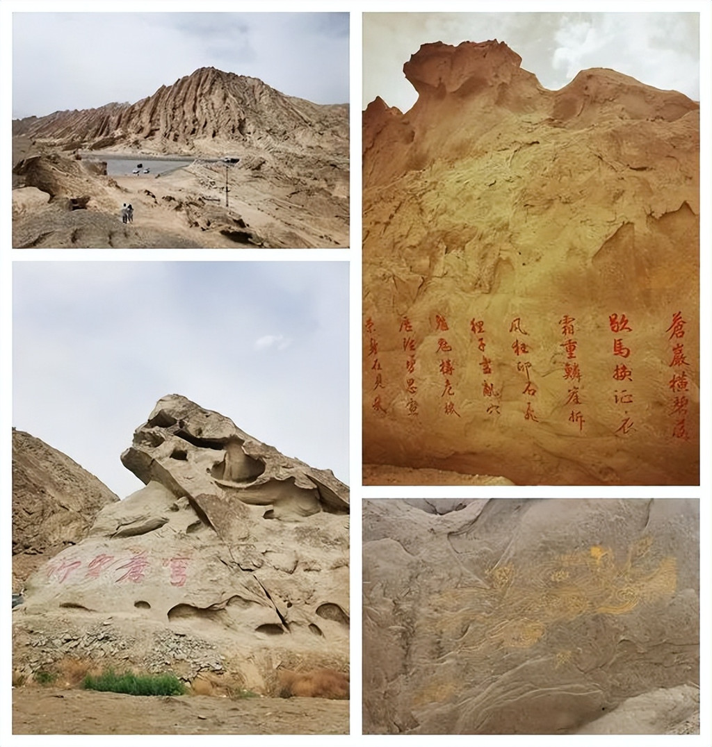 从克孜尔石窟前往库车时会经过独库公路的末端,途中已经略微领略了一些奇景,如下图“仰望苍穹”的怪石、“万笏朝宗”的丹霞、书画飞扬的石刻.....