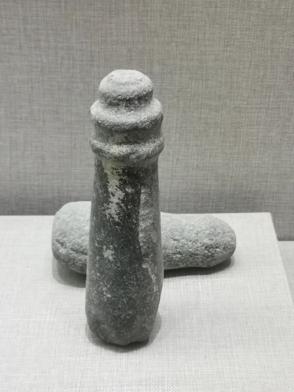 下图为出土于柯坪县遗址的祖形石杵,表现了远古人类对男根和生育的崇拜。