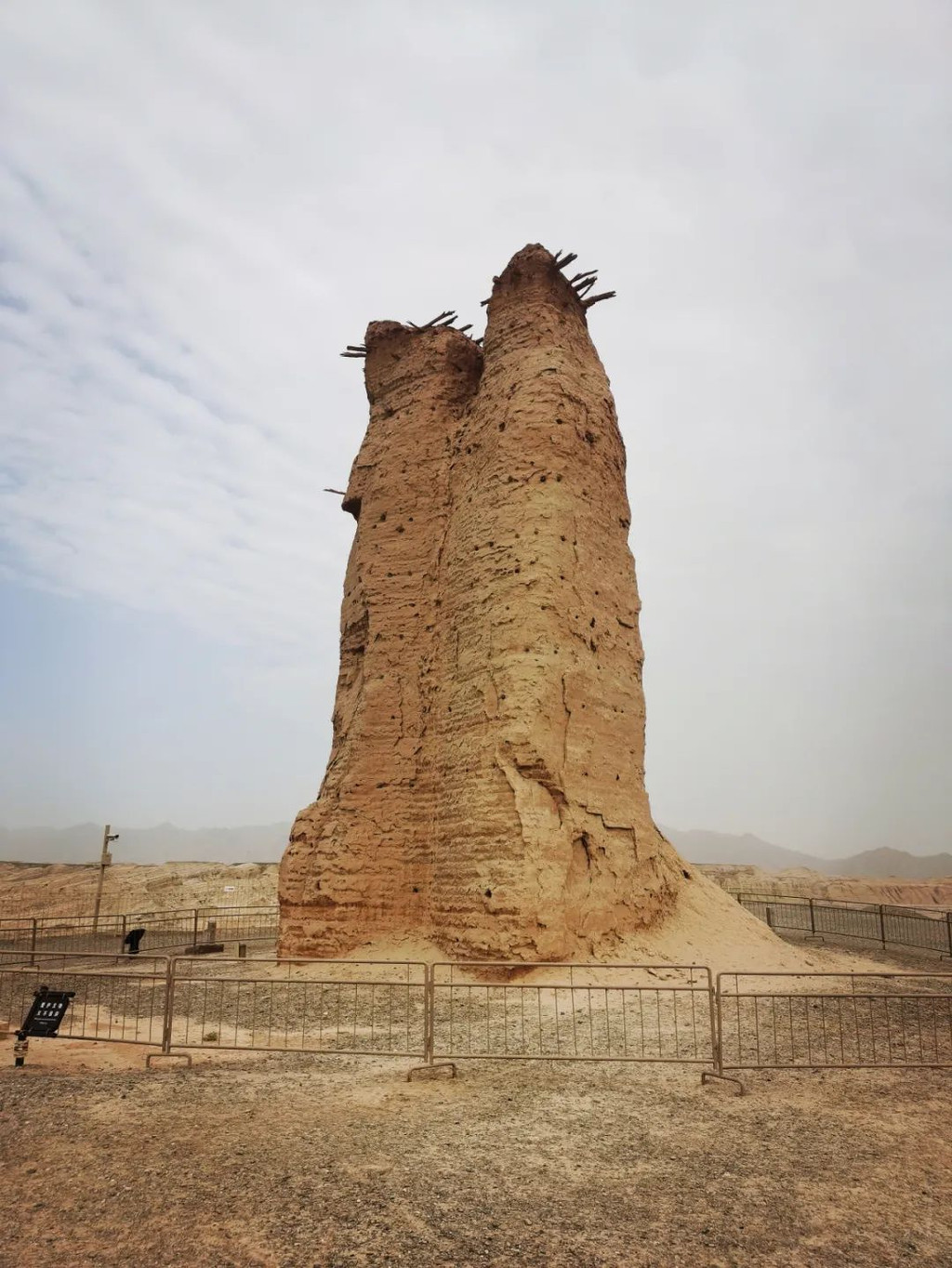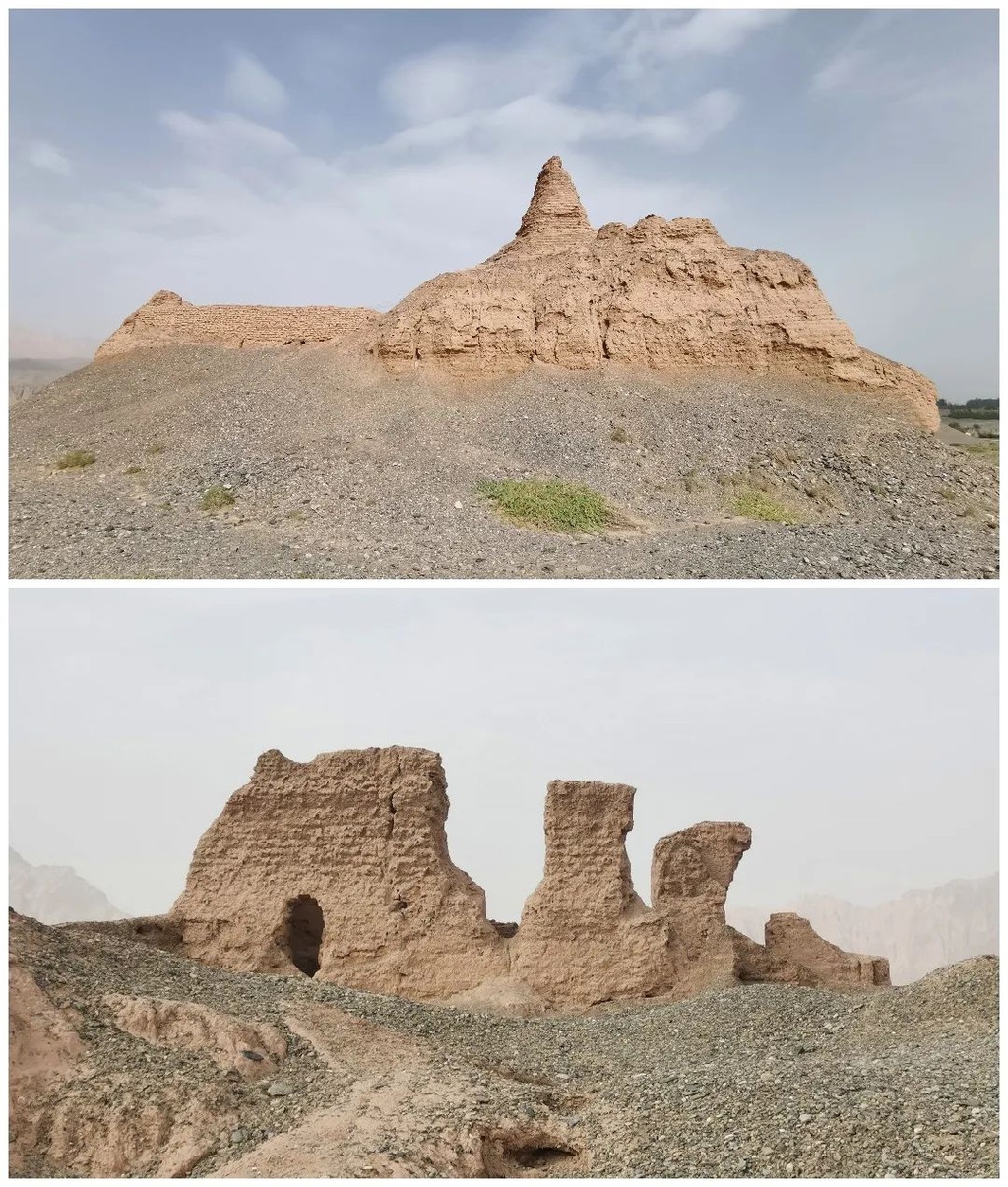 烽燧为古代边防报警的军事传讯设施,烽燧顶部可燃放狼烟薪火传递紧急军情,晚上燃火称为“烽”,白天放烟称为“燧”。克孜尔尕哈烽燧是新疆境内时代最早、保存最完好的烽燧。
