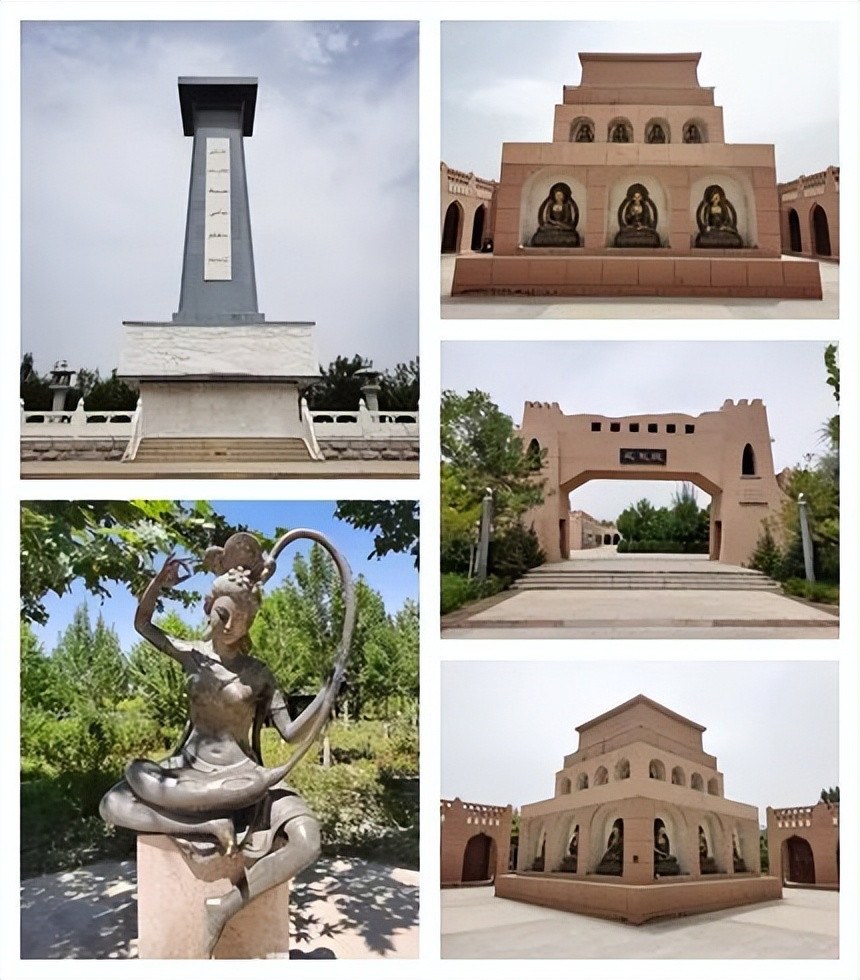 园中还有阿克苏人民英雄纪念碑和展示佛教、龟兹等文化的景观,其中一座城门上写着“威戎城”,史书记载唐代宗大历六年(771年),名僧悟空曾到此地称之为“威戎城”,此后阿克苏故地城池地名未见史载,直到明朝时,首次以阿克苏城名载于史册。