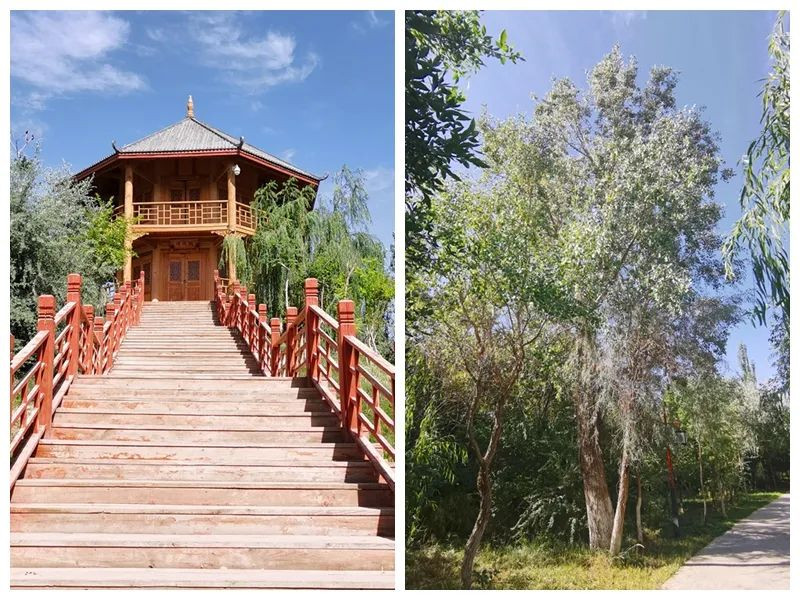 阿克苏市区还有座胡杨公园,因为琐事的耽搁,出发于春天的我把金秋胡杨林列入了自驾清单,南疆有多处胡杨林观赏地,这座小公园名不见经传,但离入秋还早,就当提前预览一下,果然,没变黄的胡杨林就是普通的行道树,没啥看头。