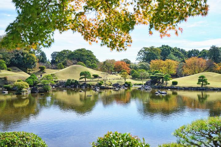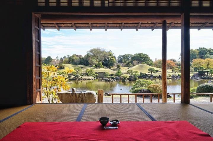 品尝过熊本拉面,来到风景优美的水前寺公园,这里是从1636年开始历经80年所建造而成的回游式庭园。园内以潜流水涌出的水池为中心,假山、浮石、松树更是将园内之美升华得淋漓精致。成趣园内围绕着园中央的池水建造,北侧有座神社,南侧有表演日本传统舞乐——能乐的“能舞台”,两者均建于明治时期。