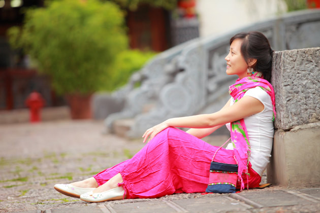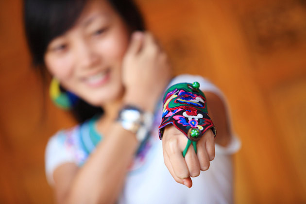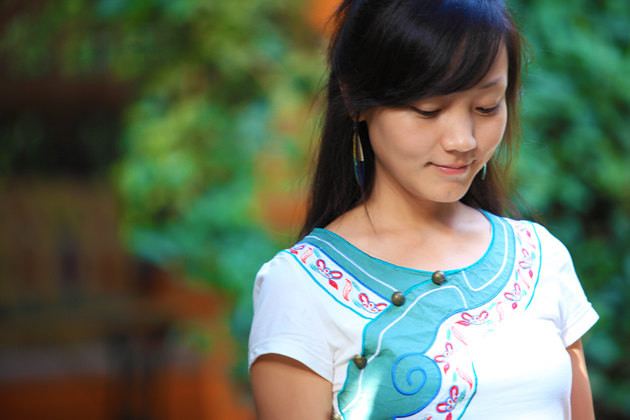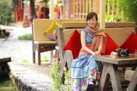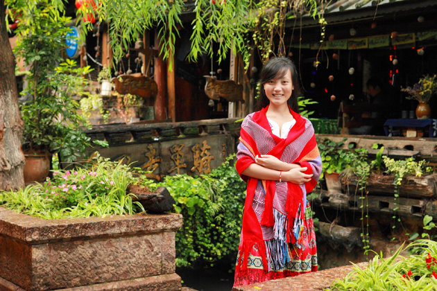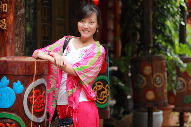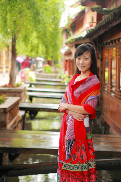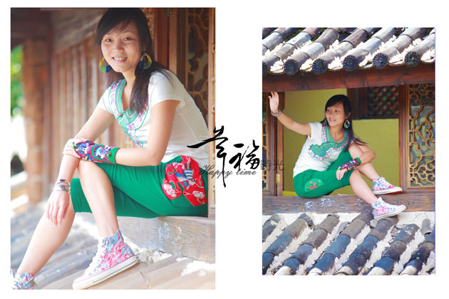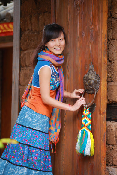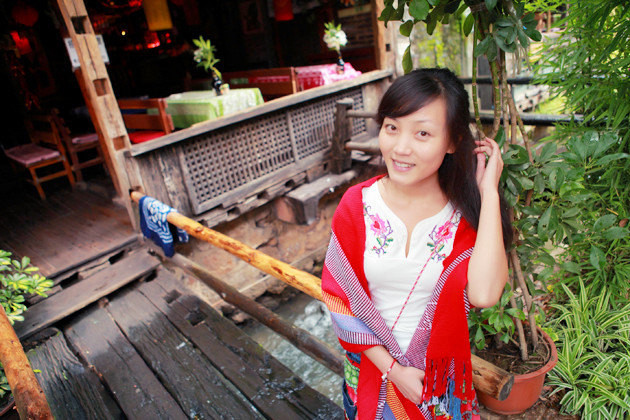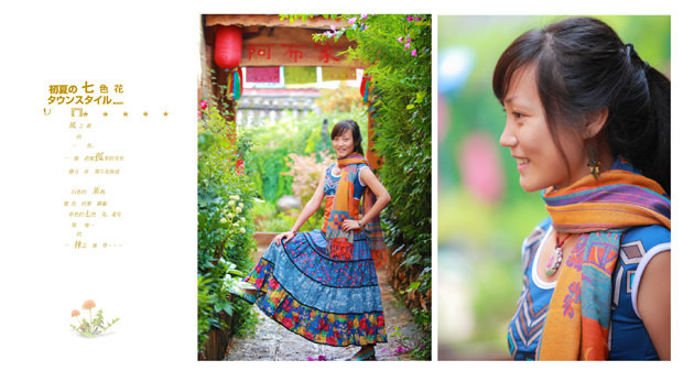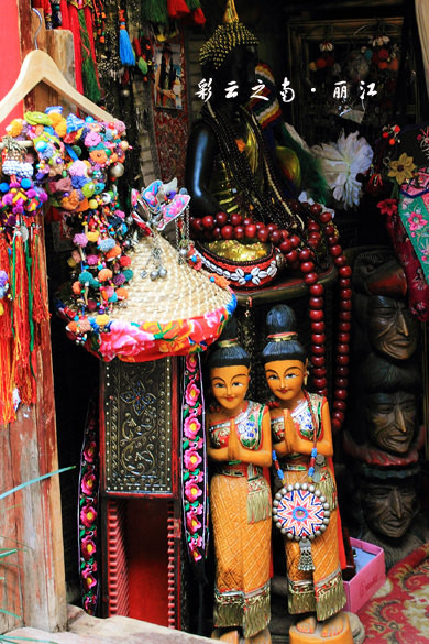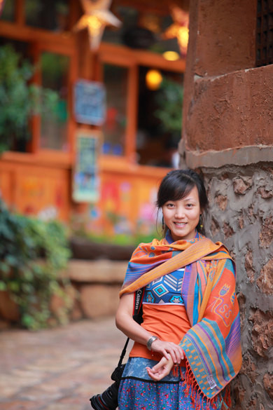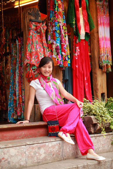丽江已经非常商业化了,大多数的门头都是卖茶叶啦、披肩啦、非洲手鼓、首饰----像这样特色的民族风服装,也不算特别多买了几件比较心仪的,准备拍照时穿