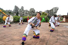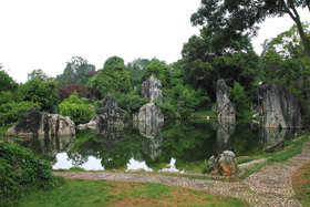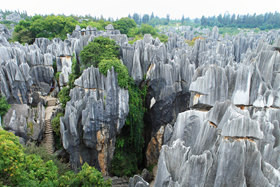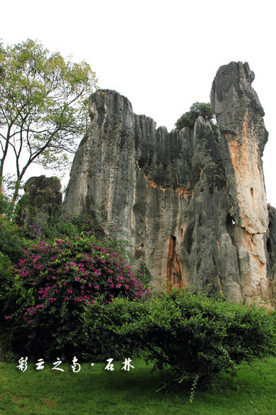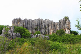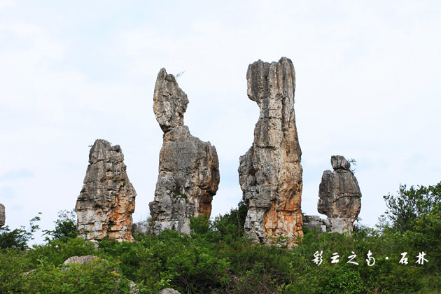绕小路又回到石林景区的起点处,坐着电瓶车,开始游览石林的外围景点外石林主要指位于大小石林之外的周围风景区。这片风景区方圆数十里。在野岭荒山,鲜花绿树丛中,又有许多奇峰怪石点缀其间。这些异石个体庞大,形象生动,加上周围环境生机勃勃,视野也较为开阔,游览又别有一种情趣和感受