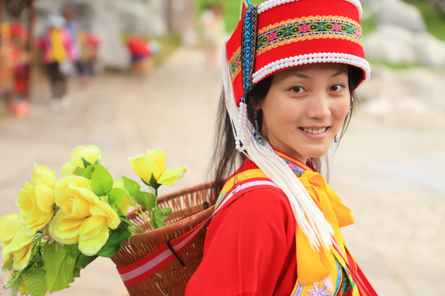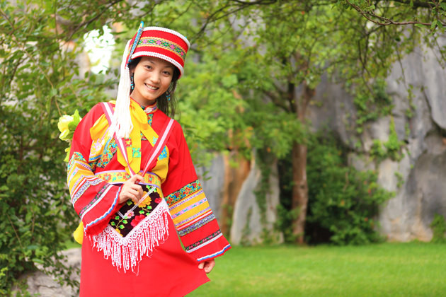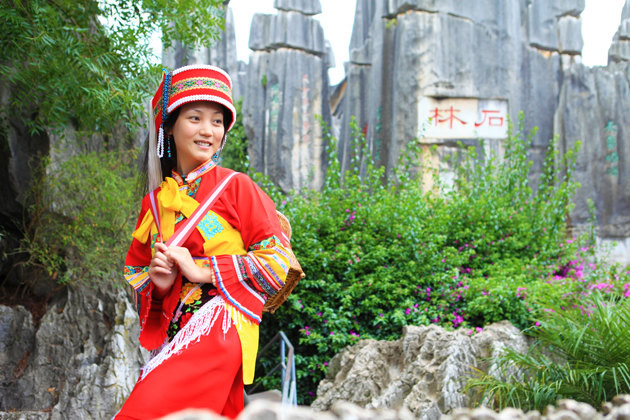 正门口很多阿诗玛服装的出租柜台一贯喜欢体验民族风的我又开始得瑟开了