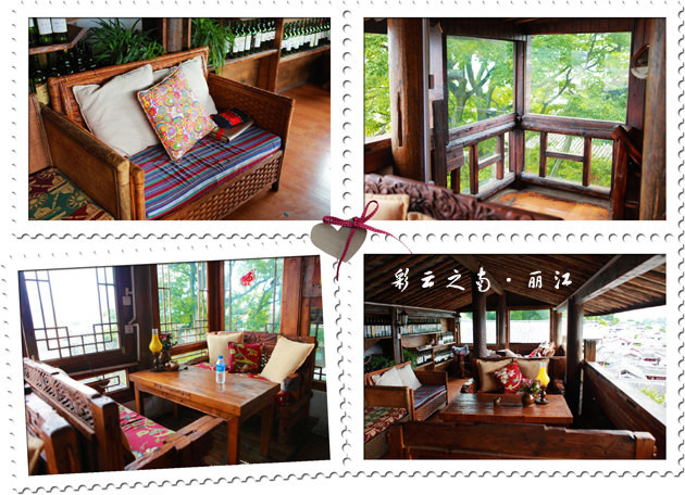 最喜欢这间客栈,是因为他有着一个二层的小观景台,坐在这里品茶,看着古城的全貌真是一种享受两天时间,在这里竟然泡了一天半这是二层的观景台,半封闭的结构,在雨季里真是把我冻的不轻啊裙子里边套的裤子,裤子里边套的还是裤子衣服外边穿衣服,衣服外边穿毛衣,毛衣外边两层披肩呵呵,就是跟过冬一样但是看到这样美丽的景色,认了吧