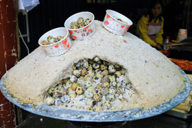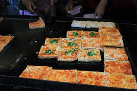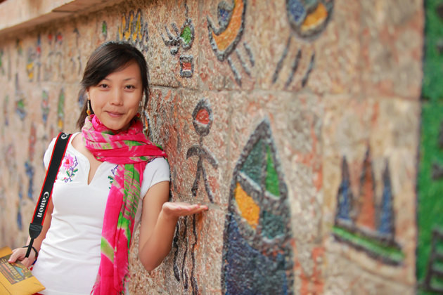 不远处就是七一街,有名的小吃一条街,每种小吃都是10元起我塞了一嘴的东西正吃着来劲呢,杜同学非要给我拍照这是猜字墙,很多都是象形字,挺有意思的