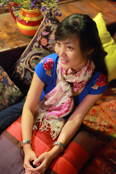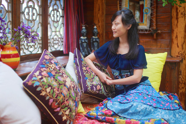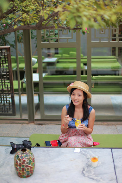 床头上柔白的纱幔轻垂,宽大的客厅里,咖啡色的真皮沙发、特制的用犁田的犁做的躺椅、精美的印度手工羊毛地毯、榻榻米式的床榻上,都能让你充分享受这份娴静和雅致