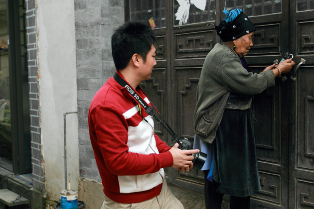 看到一扇很古朴的大门,刚要拍照,一个纳西奶奶晃晃悠悠的走过来