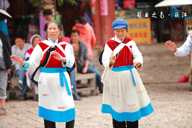 在四方街上,看到很多纳西族的爷爷奶奶们在随着音乐起舞,风雨无阻我硬生生的闯入她们的队伍中,老奶奶很是奇怪的看着我
