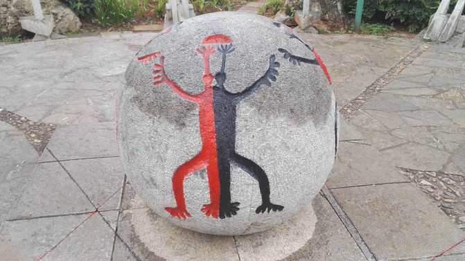 太阳广场反映基诺族的太阳历和对太阳的崇拜。广场中央的石球为地球,球上刻有基诺族祖先,四周的石柱表示东南西北四个方位,基诺历一年为十二个月,一月三十日,各月名称与汉族类似,地支在前,天干在后,以六十干支为一轮纪年、纪日。