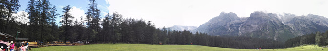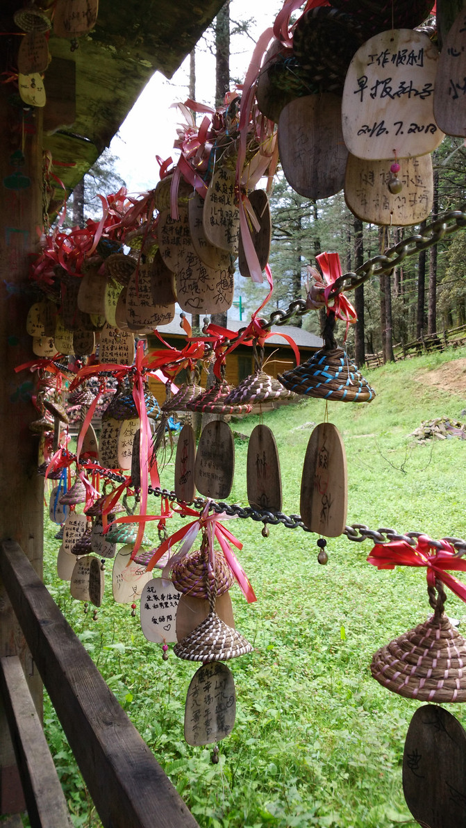 聆听了纳西族导游的解说,我顿时肃然起敬。云杉坪是纳西族人心中的圣洁之地。传说,从这里可通往“玉龙第三国”。据东巴经记载,“玉龙第三国”里“有穿不完的绫罗绸缎,吃不完的鲜果珍品,喝不完的美酒甜奶,用不完的金沙银团,火红斑虎当乘骑,银角花鹿来耕耘,宽耳狐狸做猎犬,花尾锦鸡来报晓”。比起我们的“桃花源”,纳西族人的“玉龙第三国”更为浪漫,更为灿烂。最让我动情的是,眼前的云杉坪自古以来是纳西族年轻男女的殉情之地,殉情的方式有跳崖、上吊、服毒。这不是传说,而是活生生的事实。“问世间情为何物,直教人生死相许?”,云杉坪见证了多少感天动地的爱情故事!为爱而殉情的纳西族青年男女,坚信他们的灵魂会进入玉龙第三国,得到永生的幸福。