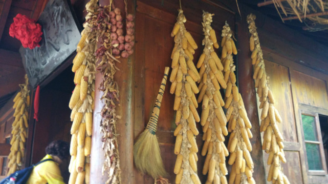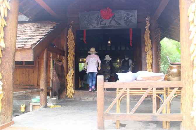 德昂族民居多为草排覆顶竹木结构的干栏式建筑,眼前的德昂村建筑纳入了能容纳数十人居住的德昂大房子,毡帽顶的小房子,还有颇具浪漫色彩的大公房、小公房。。。。