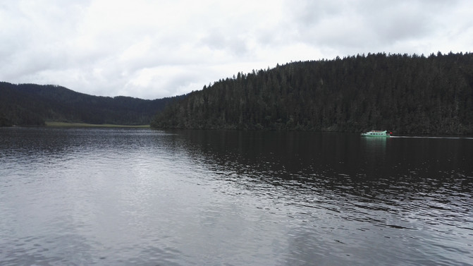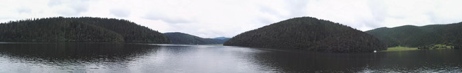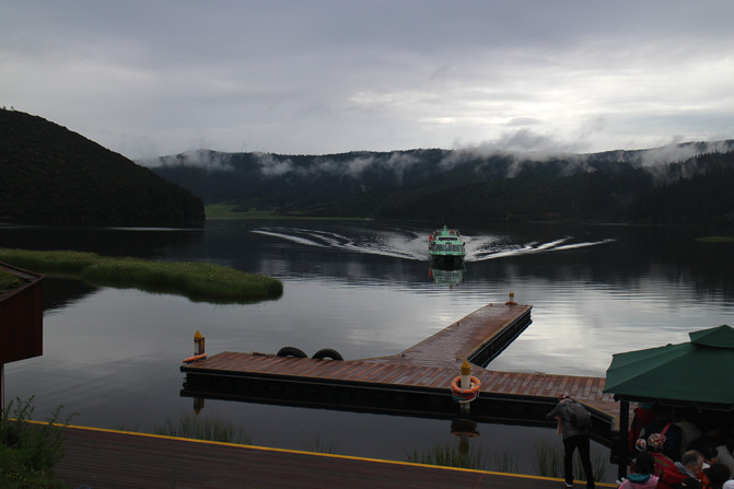 乘游船从碧塔海回属都湖
