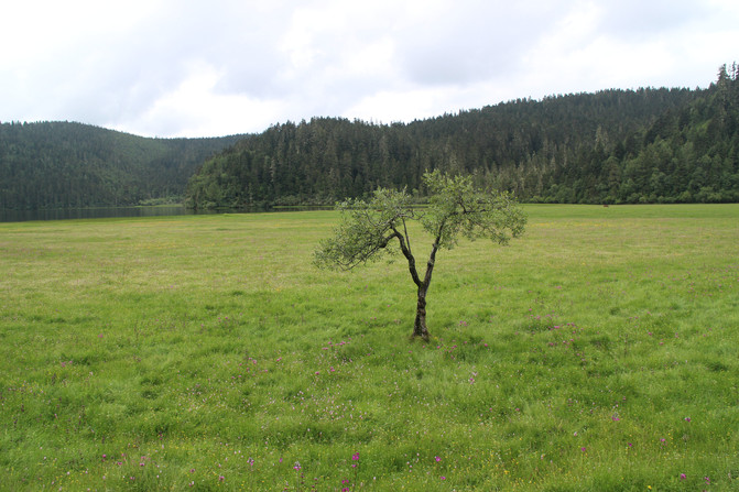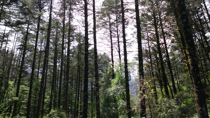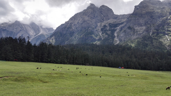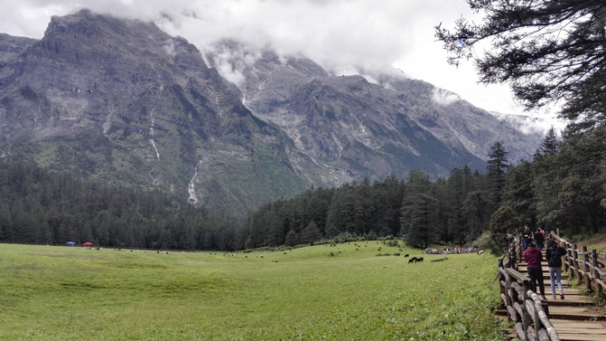 云杉坪——海拔3240米,纳西语称为“吾鲁游翠阁”。意为殉情之地,古时纳西青年男女追求完美爱情的精神家园。在纳西东巴经典《鲁般鲁饶中》,曾把云杉坪描绘成白鹿当耕牛、赤虎当坐骑、雉鸡来报晓、白雪酿美酒、树上结金果、洁净无苍蝇的理想乐园,即纳西族传说中的“玉龙第三国”。这里是一片花团锦簇的高山草甸,四周由高大、茂密的云杉林所围绕,宁静悠远,游客身处其中,已觉远离了凡尘俗事,渐入桃源深处......