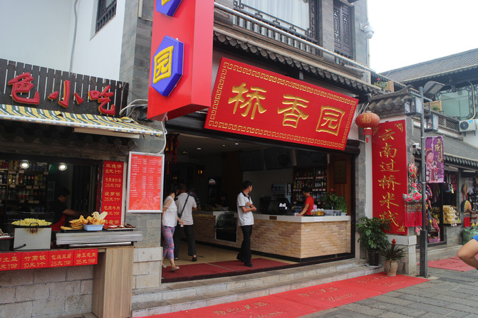 首先进入的不是民族村的入口,而是一个购物广场,有点在丽江古城的感觉,不过没有丽江古城那么拥挤。景观还是挺不错的,就连小吃店都能建造一个文塔来开,太神奇了。