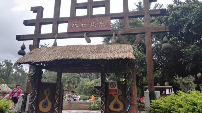 拉祜族寨与基诺族寨紧紧毗连,寨内建有拉祜族茅草房、大公房、教堂、牛棚以及葫芦广场。中心位置的葫芦广场形似一只硕大的葫芦平面,核心有一组石雕葫芦。传说拉祜族的祖先诞生于葫芦中,葫芦广场表现了拉祜族的祖先崇拜观念。拉祜族人口约41万,主要聚居在思茅、临沧境内的澜沧江沿岸地区。