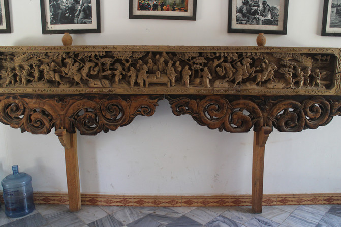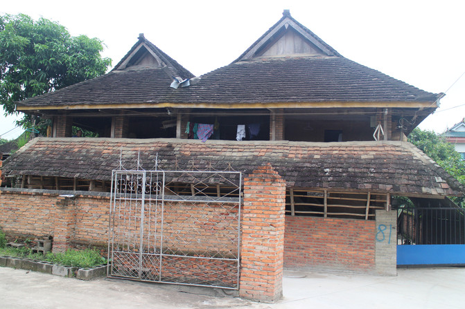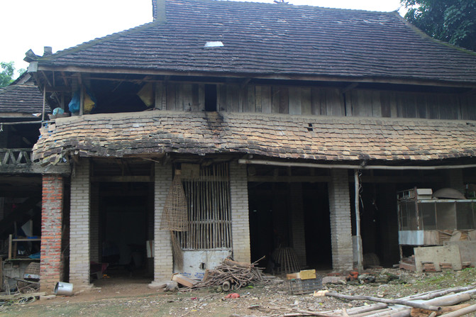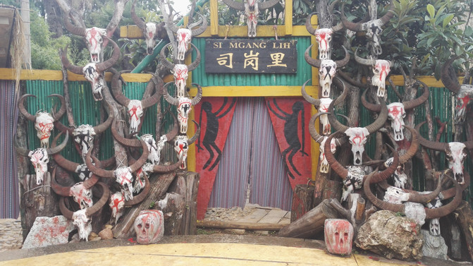 官房,旧时一方景颇人的最高统治者。山官房,集中了景颇族干栏式、倒T型等建筑特征和布局形制,属竹、木、茅草为主要建材的竹楼。建筑分两层,下层堆放杂物或饲养牲畜,上层住人。山官房中柱挂有牛头,柱的粗大程度,是财富和权利的象征。屋檐下挂有许多竹篾圈,代表该山官所统治管辖的人丁:象牙往往表现着山官的富有。