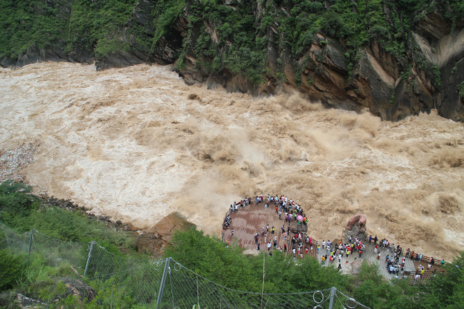 虎跳峡,以“险”名天下,是中国最深的峡谷之一。虎跳峡有香格里拉段和丽江段和之分,而香格里拉虎跳峡是国家AAAA级旅游风景名胜区,分上虎跳、中虎跳、下虎跳三段和高路徒步线,其中:虎跳峡徒步线被誉为“世界十大经典徒步线路之一”,主要由高路徒步线和中虎跳峡徒步线两大部分组成。虎跳峡位于香格里拉市虎跳峡镇境内,距香格里拉市96公里,距丽江市80公里。发源自青海格拉丹东雪山的金沙江迢迢千里奔波到此,突遇玉龙、哈巴两座雪山的阻挡,原本平静祥和的江水顿时变得怒不可遏,虎跳峡是万里长江第一大峡谷,峡谷垂直高差3900多米米,是世界上最深的峡谷之一。江流最窄处,仅约30余米,相传猛虎下山,在江中的礁石上稍抬脚,便可腾空越过,故称虎跳峡。3900米下的水石咆哮,216米短距离落差,以其山高谷深,雄奇险峻闻名于世。