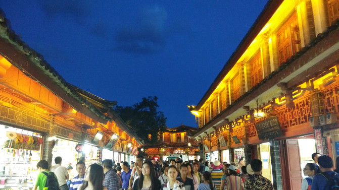 游览完玉龙雪山,在去丽江古城的路上,参观螺旋藻展示中心,然后到达丽江古城,入住亚鼎悦酒店,收拾妥当,马上动身,夜游丽江古城。