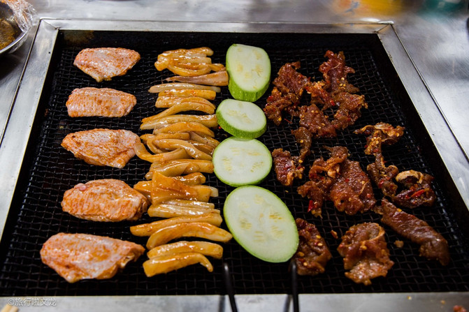 还没到时间这个活动热度就十分的高,但是我却被旁边的滇国烧烤所吸引了,大老远的就听到了烧烤的飘香,这个滇国烧烤还是相当的出名的,看来这里买的游客数量就可以很好的看出,我当然是不能错过了。烤肉在烤架上烤着,看着很有食欲。