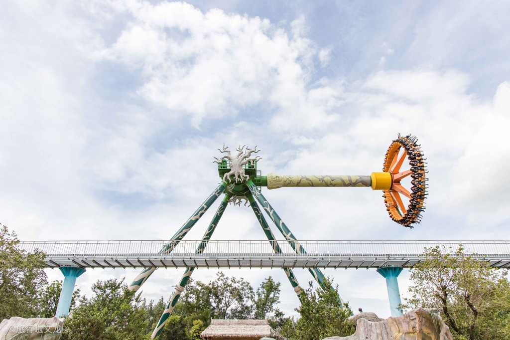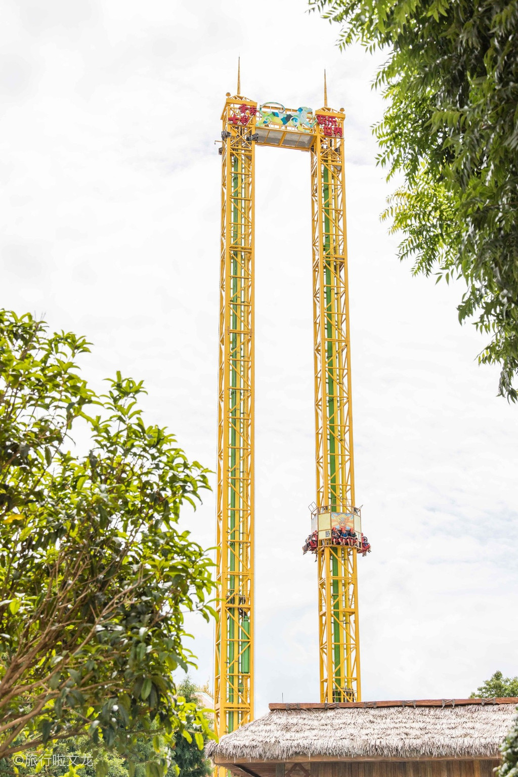 这个乐园有好多的项目,所有项目开放的时间也是有规定的。有雨林探险。洪荒石锤。 虎跳峡 。童梦世界等等,就不一一举例了。但是还是想说一下童梦世界,它给我的印象很深,主题园是植物元素和民族建筑构成的。很适合低龄段的儿童去游玩。所以有小孩的游客可以在这里陪同小孩游玩。里面的旋转木马和转转杯都可以享受欢乐的时光,此外还有一些带来快乐的项目。