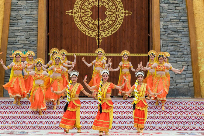 这个剧场的造型有着 印度 建筑的风格,也掺杂着民族的特色,在这里表演是不错的地段,他们也是经过专业的培训,展现给我们的舞蹈也很有特点,这样男女搭配的舞蹈很有看点