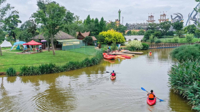 皮划艇是一向非常火的水上运动,这里正好有皮划艇的娱乐项目,我们当然免不了去体验了一下,其实相比较于皮划艇,我更喜欢这边的美景,在还没有开始上船之前我就先打开我的无人机,好好的欣赏一下这里的美景,真的挺不错的。