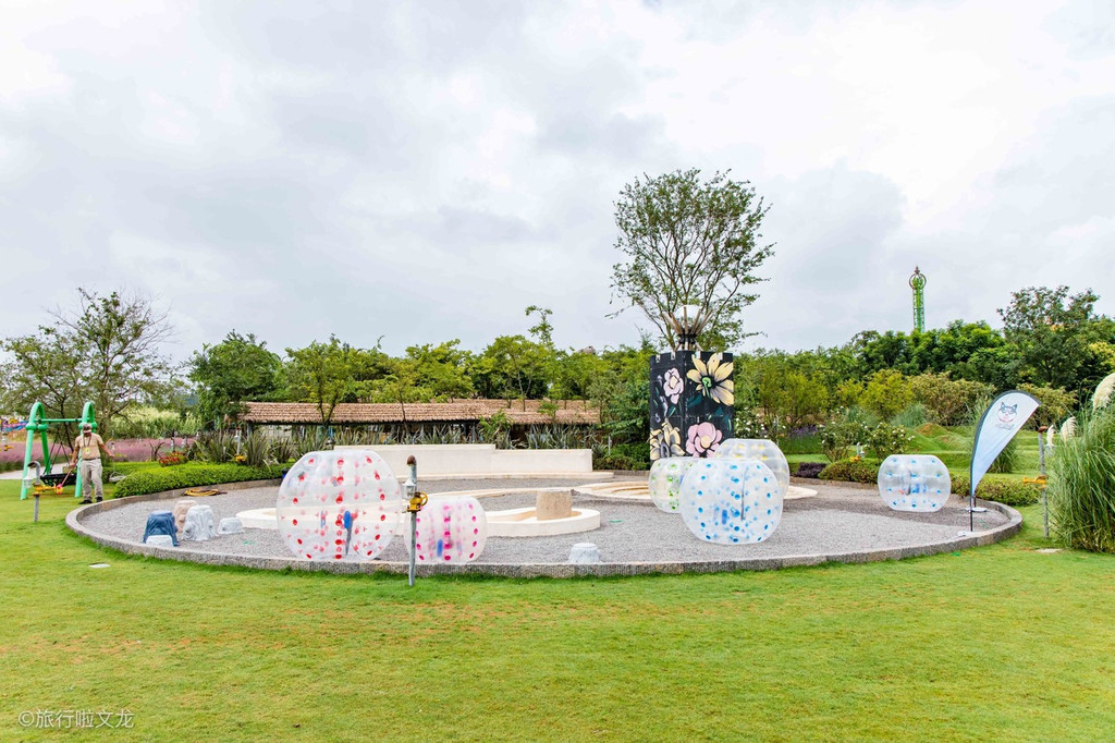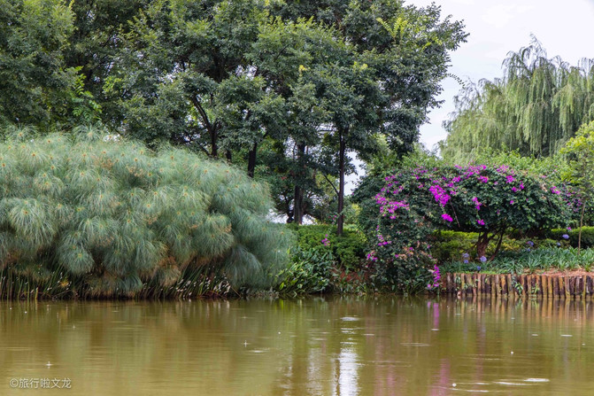 在这里宽阔的水面可以让我们看到很多公园里面的娱乐设施远处大象雕塑和摩天轮都非常清晰的呈现出来,不远处的岸边,还有一处鼠尾草的花园,看起来是那么的美,看起来很有意境。