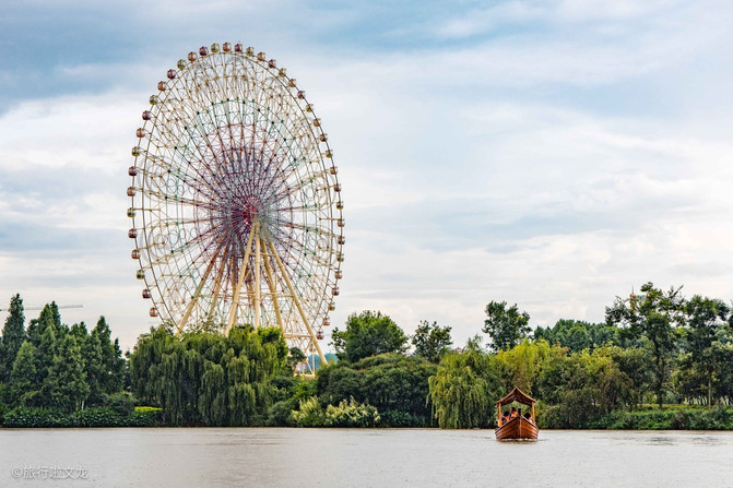 我悠哉的划着,欣赏着周围的美景。柳条开的如此的繁茂,旁边的花也竞相的开放着,绿化做的不错。最吸引眼球的还是高大的摩天轮。白天的摩天轮虽然没有晚上更能衬托气氛,是因为没有灯光的点缀,但是这个摩天轮的设计还是相当的有视觉的冲击。给我留了深刻的印象,这样泛舟而行的机会并不多,我很珍惜。