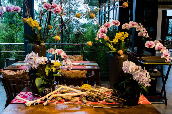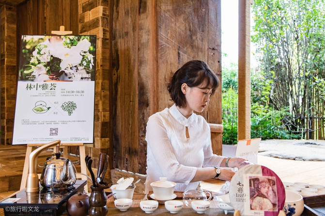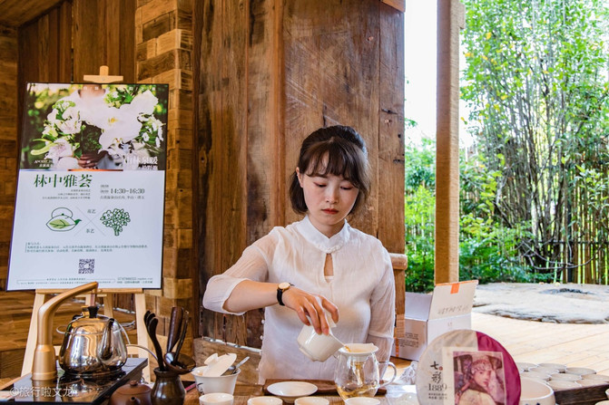 踏入了半山璞 玉里 面,才知道是茶道和花艺的观赏地点。也有幸赶上了林中雅荟的时间点,所以我们就参与进去了。茶道的姑娘给我们展现娴熟的调茶,动作是相当的熟练,每一个细节都做得很到位,茶还没调好,香气就飘了出来,调好后的味道很好喝,令我挺难忘的。