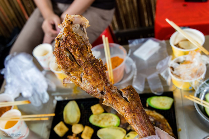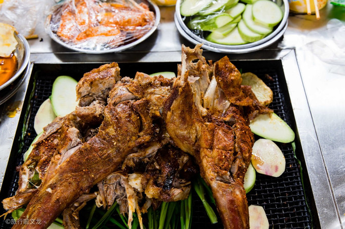 沉浸在体验的快乐中,到了中午我们就到了吃饭的时候了,我们就去了这里非常有特色的烧烤区来尝一下这里的烧烤,吃烤全羊,外加两道烧烤套餐,这里的烤全羊是非常的出名的,香喷喷的烤全羊加上味道不错的烧烤调料,吃起来特别的香,而且它的块头还是挺大的,就看这一个羊腿,就已经是特别大了。
