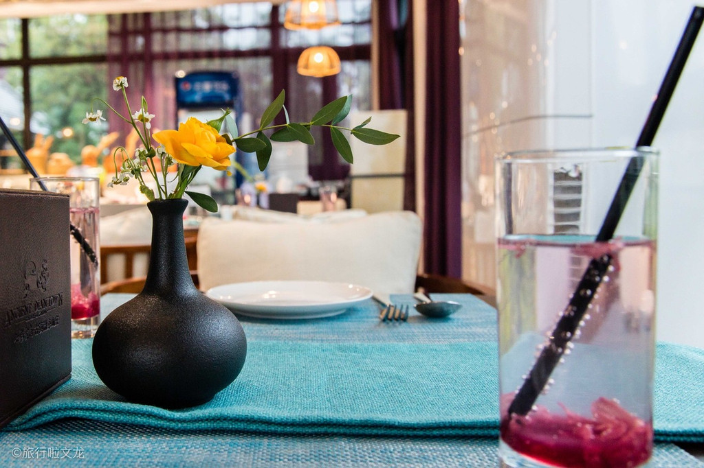 我们的晚饭是在牧云台吃的西餐,这个地方相当的有格调,处于最高处,而且四面都是玻璃,外面是无边泳池,还可以很好的观赏外面的美景。里面的装修更是精致无比。