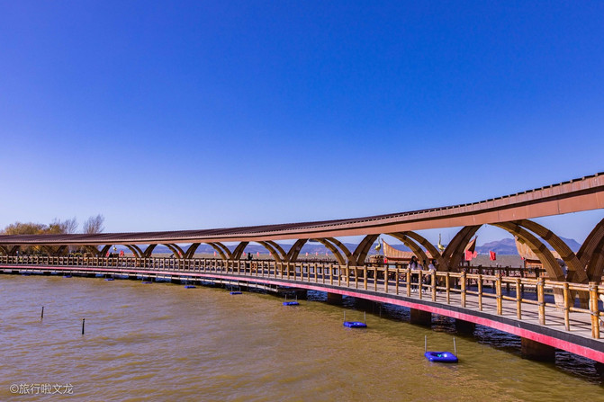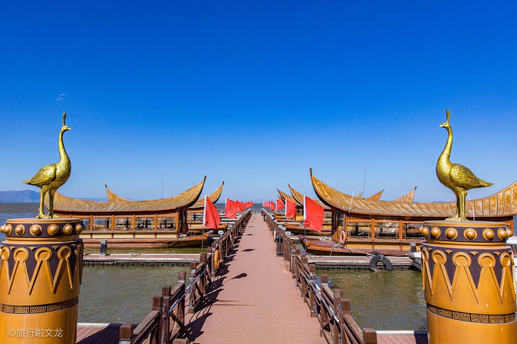 这里不光设计新颖,而且在建筑上也是偏向于现代化与古风相结合。这样的大码头和侯船的大厅相结合着,也在水面上有倒影,成为一番美景。游客们刚来的时候,这里给人的感觉便是千帆点点古滇渡口流传着历史的遗风。