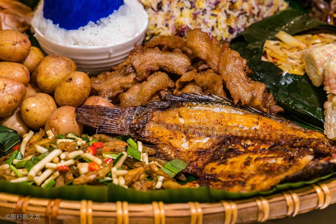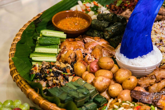 这个孔雀宴菜品味道还是很不错的,荤素合理的搭配,很久没有见过这样精致的菜品了,彩色的饭团味道很鲜美,这里灵魂酱汁我觉得很有 云南 特色的重口味,会更浓烈咸和辣,这个分量还是很足的。