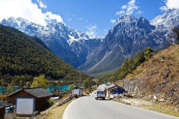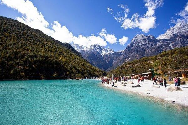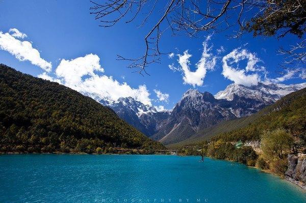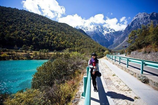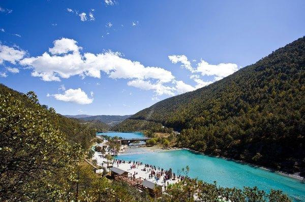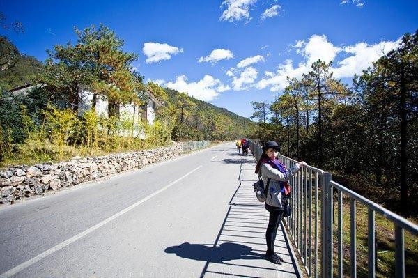 这张照片想车行大概20分钟,就到了蓝月谷。导游介绍,我们可以选择坐电瓶车或者步行游览蓝月谷,他在终点等我们。毫无疑问,我们肯定选步行啦,再说了,电瓶车要收费的。