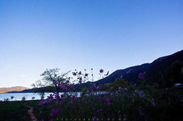 这张照片想说睡了一觉之后,感觉有所改善,但还是有点晕乎乏力。但时间实在不能就这样被浪费,决定出去走走。这时太阳下山了,气温下降了很多,穿上羽绒,出发。 客栈就在湖边,穿过后门就可以走到湖边,这是我跟她的第一次亲密接触。哈哈~ 客站后面有个小小的花圃,里面种着我最爱的格桑花,大爱~点啥?…
