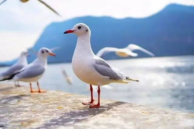 成群的海鸥在波光粼粼的湖面上飞起,是摄影爱好者绝对不能错过的一幕。