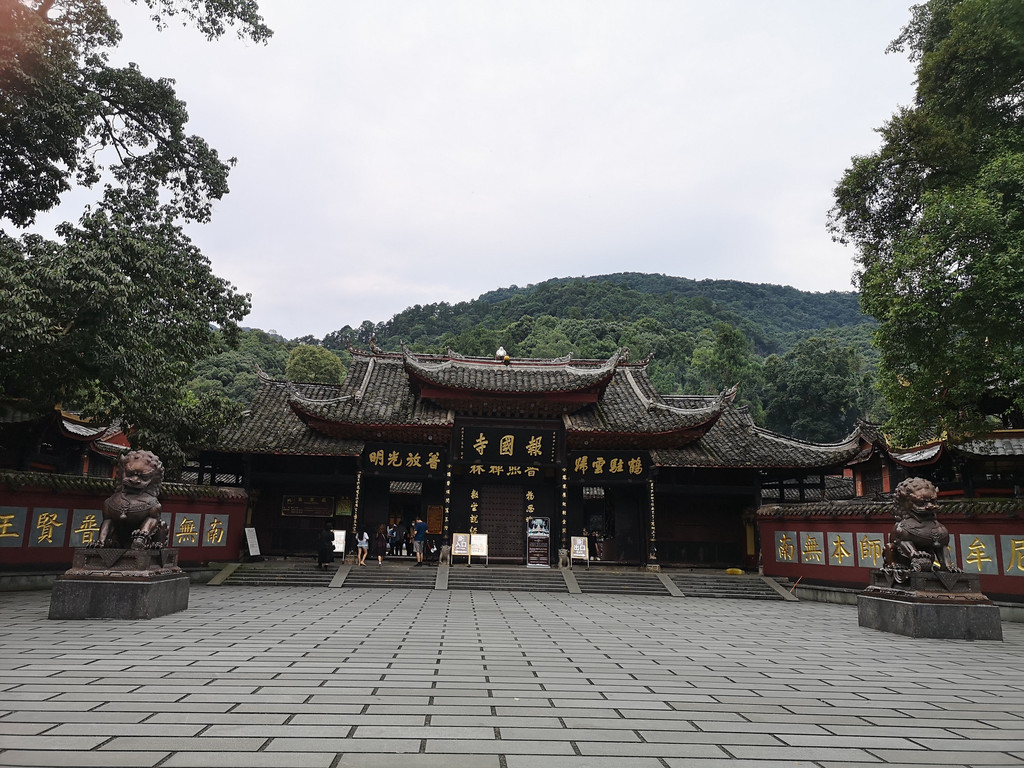 峨眉山报国寺是峨眉山的第一座寺庙、峨眉山佛教协会所在地,是峨眉山佛教活动的中心。山门前有一对明代雕刻的石狮,造型生动,威武雄壮,就象左右门卫,守护着这座名山宝刹。康熙四十二年(公元1703年),康熙皇帝取佛经“四恩四报”中“报国主恩”之意,御题“报国寺”匾额。