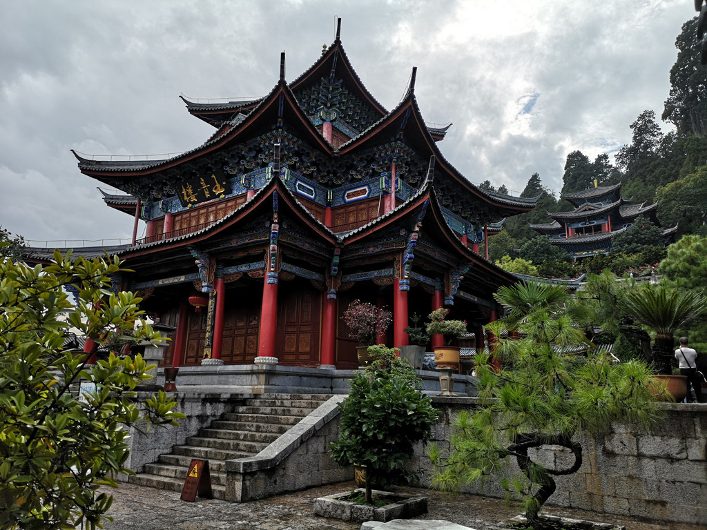 坐落在昆明西山森林公园太华山腹的太华寺,依山傍水,掩映在绿树翠竹之中,巍然耸立,颇为壮观。寺内亭、阁、廊、池汇成曲,清幽恬静。以大雄宝殿为中心,两旁分出游廊,与两厢亭阁楼台相串连,建筑艺术别具特色。古朴典雅的建筑风格,烟波浩渺的五百里滇池,蜿蜒陡峭的太华峰,交相辉映,构成一幅扑朔迷离,宁静和谐的迷人景色。
