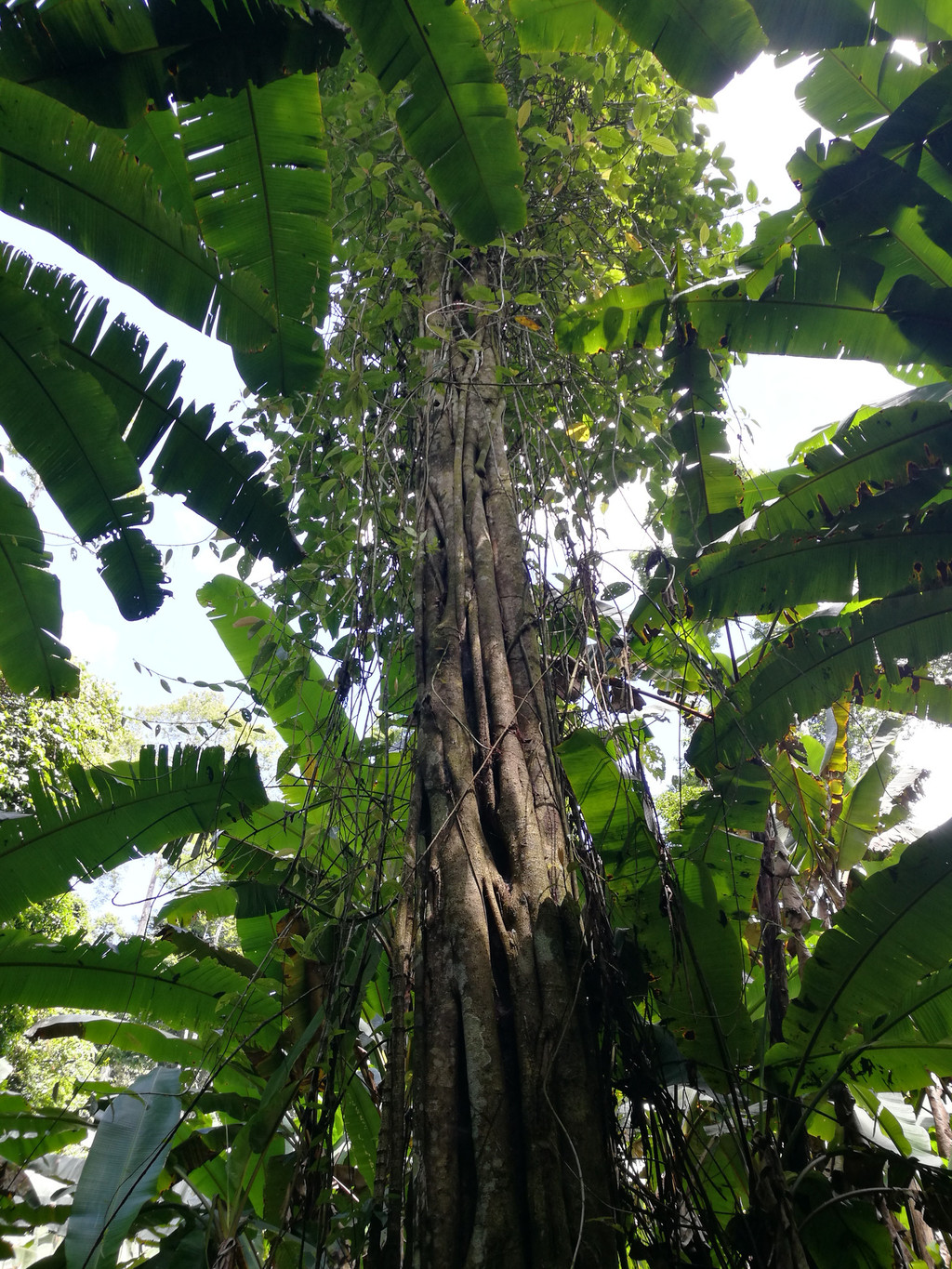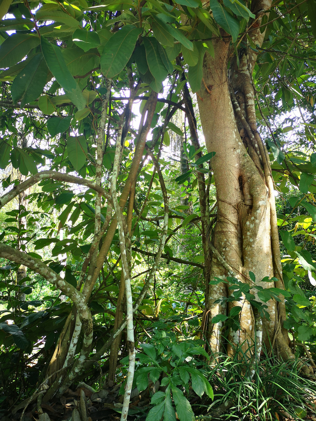 从绿石林出来,导游又带领我们来到热带雨林区。进入景区,湿热的空气扑面而来。在热带雨林区植物的寄生现象、绞杀现象、大板根等也是随处可见,适者生存,众生概莫例外。