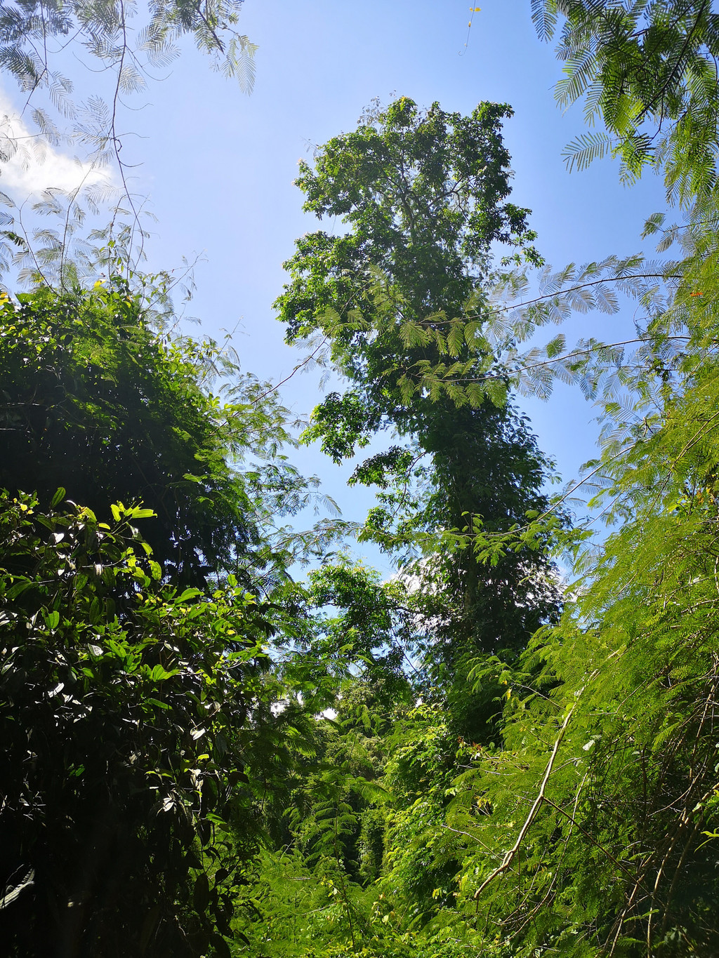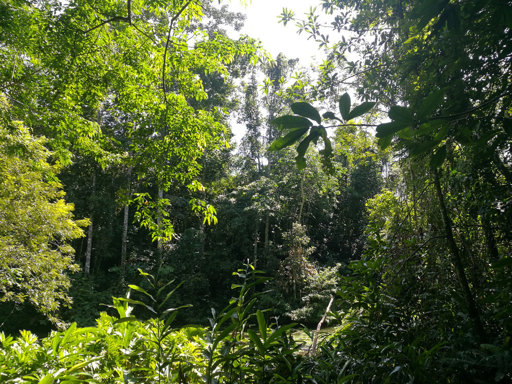 漫步林间,树上鸟儿鸣叫,林层中间的藤本植物,附生植物、蕨类植物,特别是残酷的绞杀现象令人目不暇接。