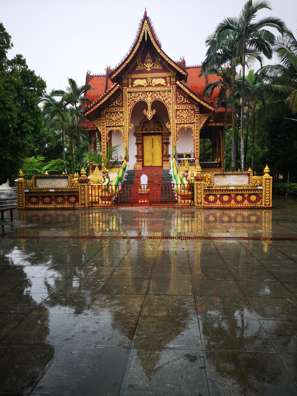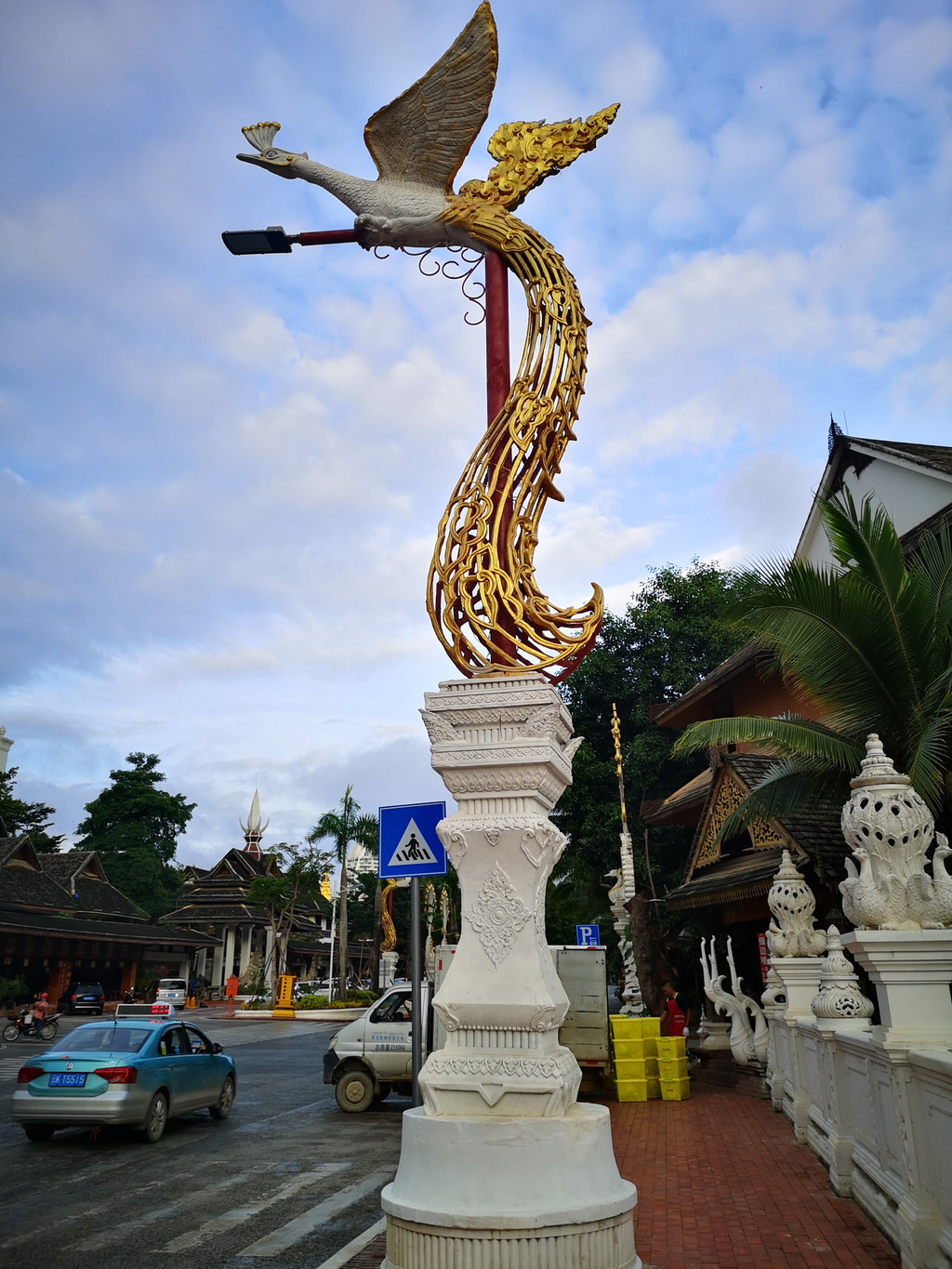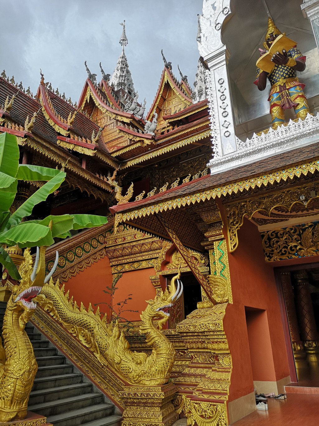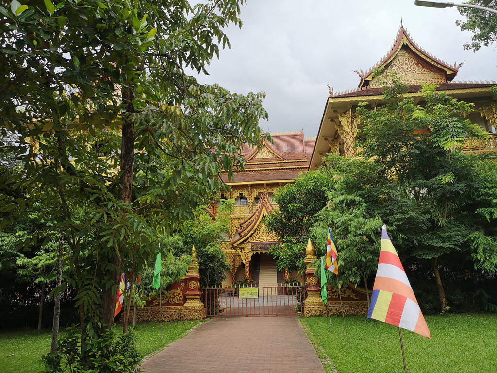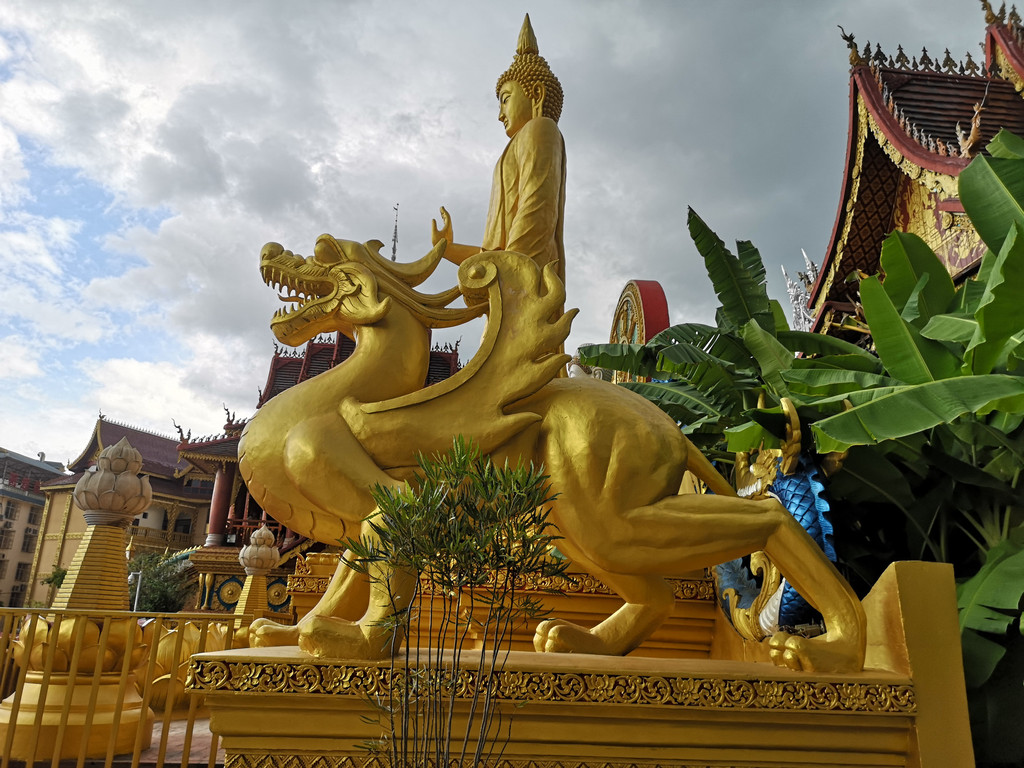 经过傣王行宫,穿过放生湖上的风雨桥,绕过白塔就到了享誉东南亚的西双版纳总佛寺。