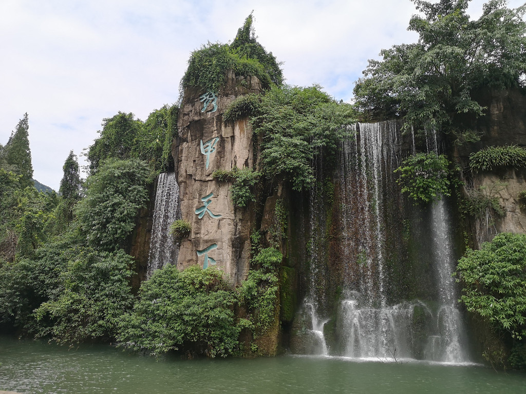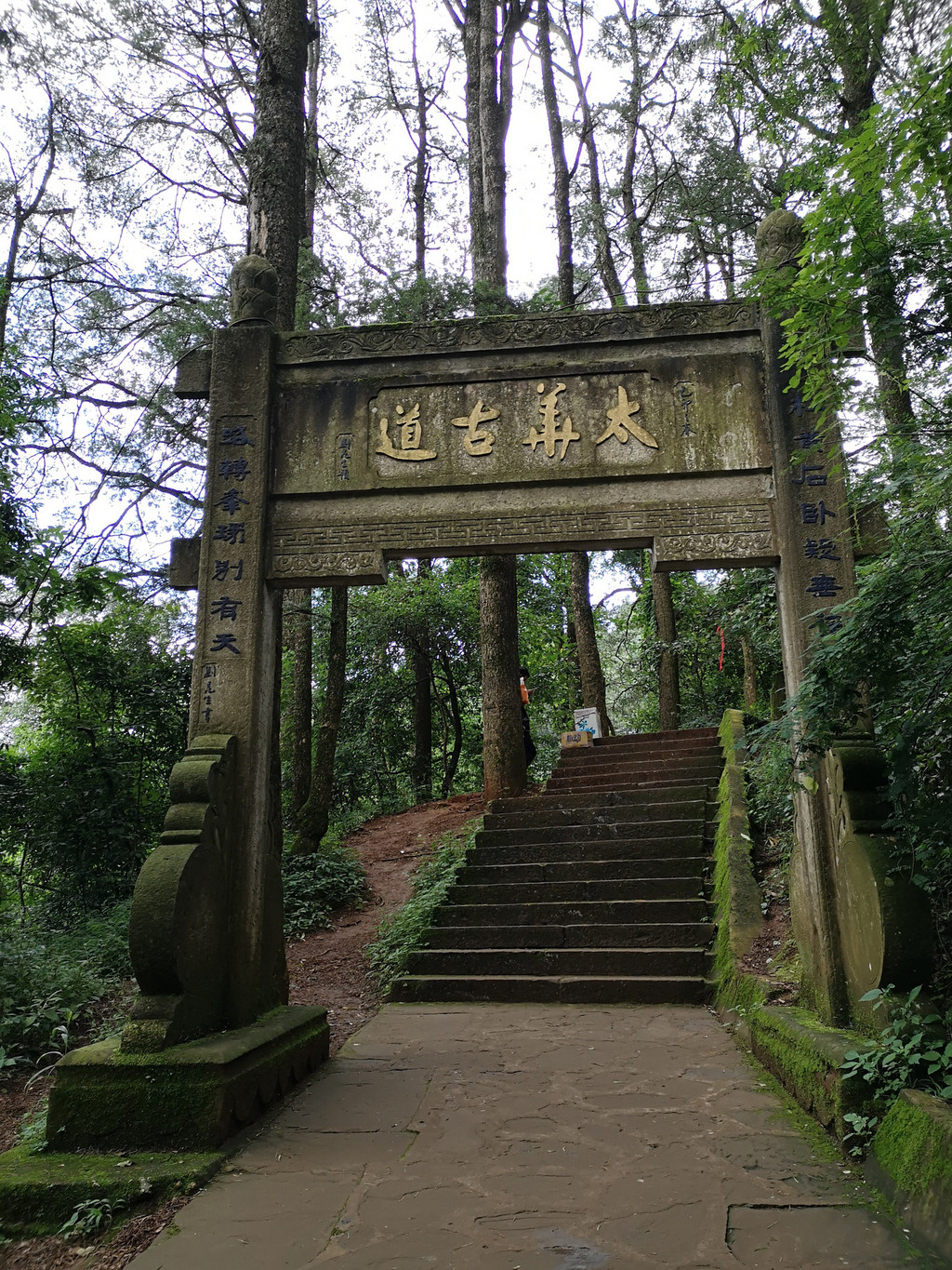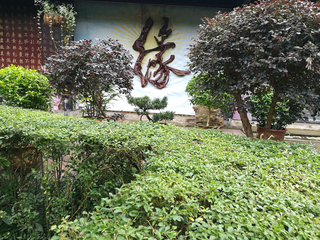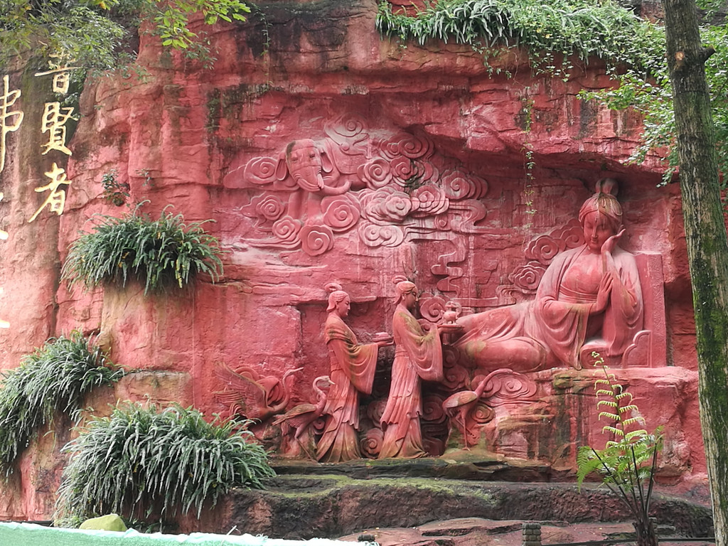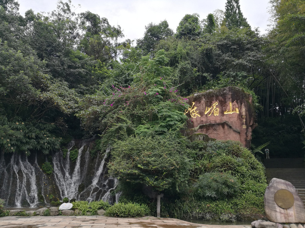 从报国寺出来已经将近中午,我们一路步行到报国寺客运中心,准备乘车前往金顶,途中经过一个石刻长廊和第一山亭。