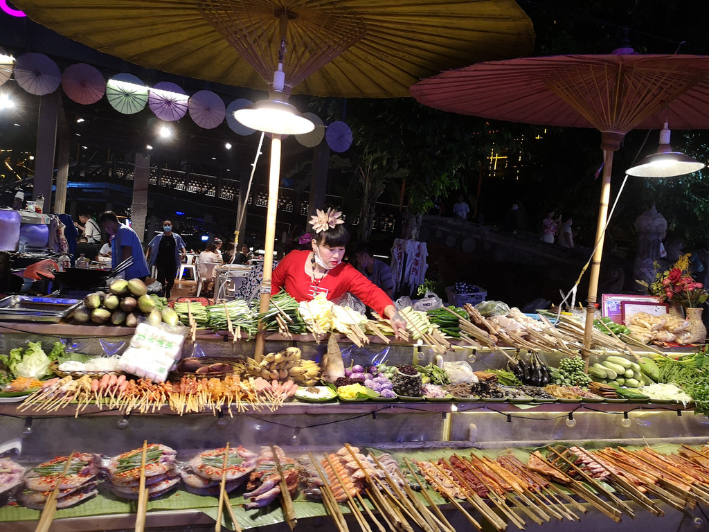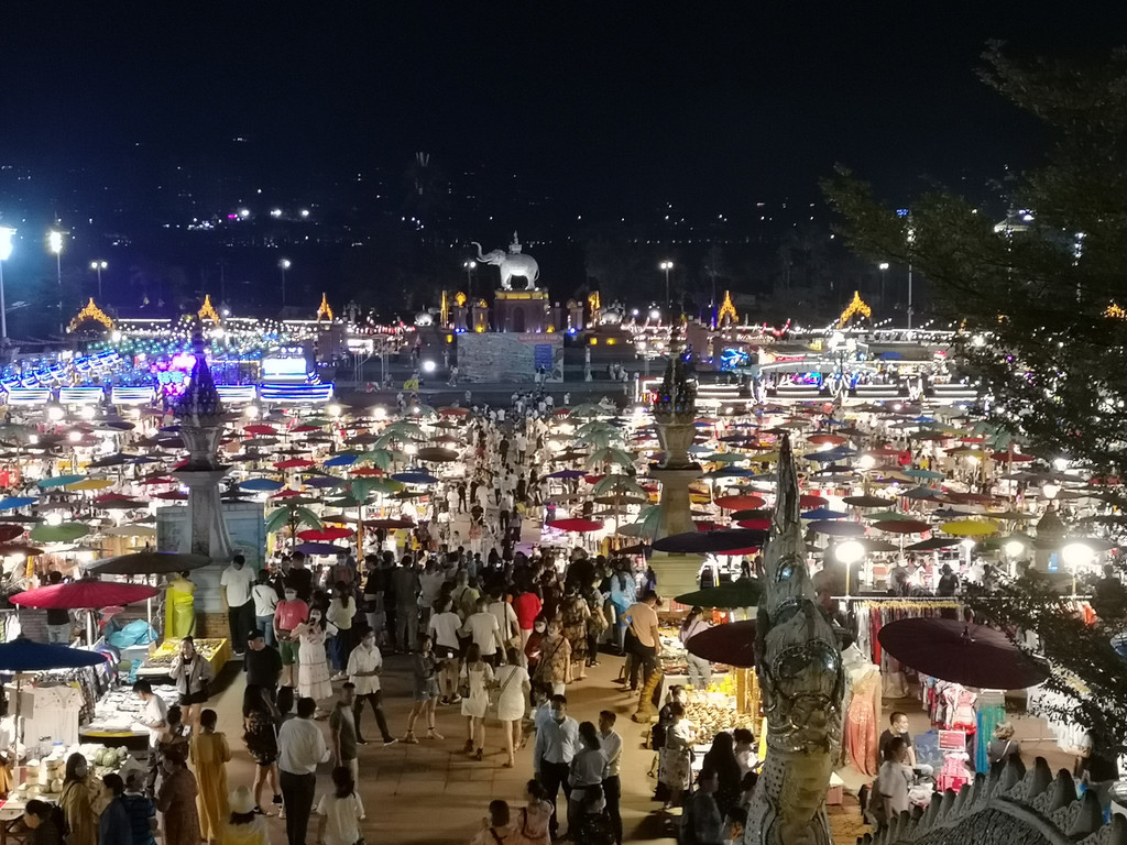 听说告庄星光夜市的灯光很漂亮,晚上想去看看。袁师傅说星光夜市要晚上8点以后才热闹,从曼听公园出来,先回到酒店稍事休息,晚上8点钟出门去星光夜市。