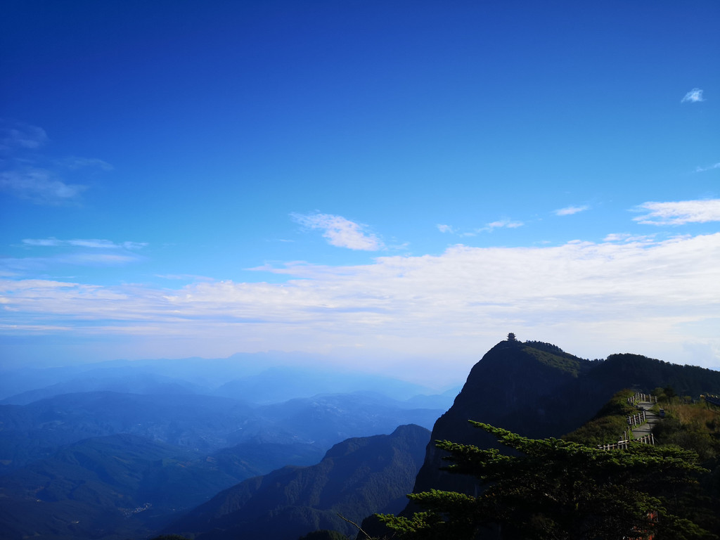 在金顶上举目四望,四周的山峦尽收眼底,还可以看到远处的万佛顶。